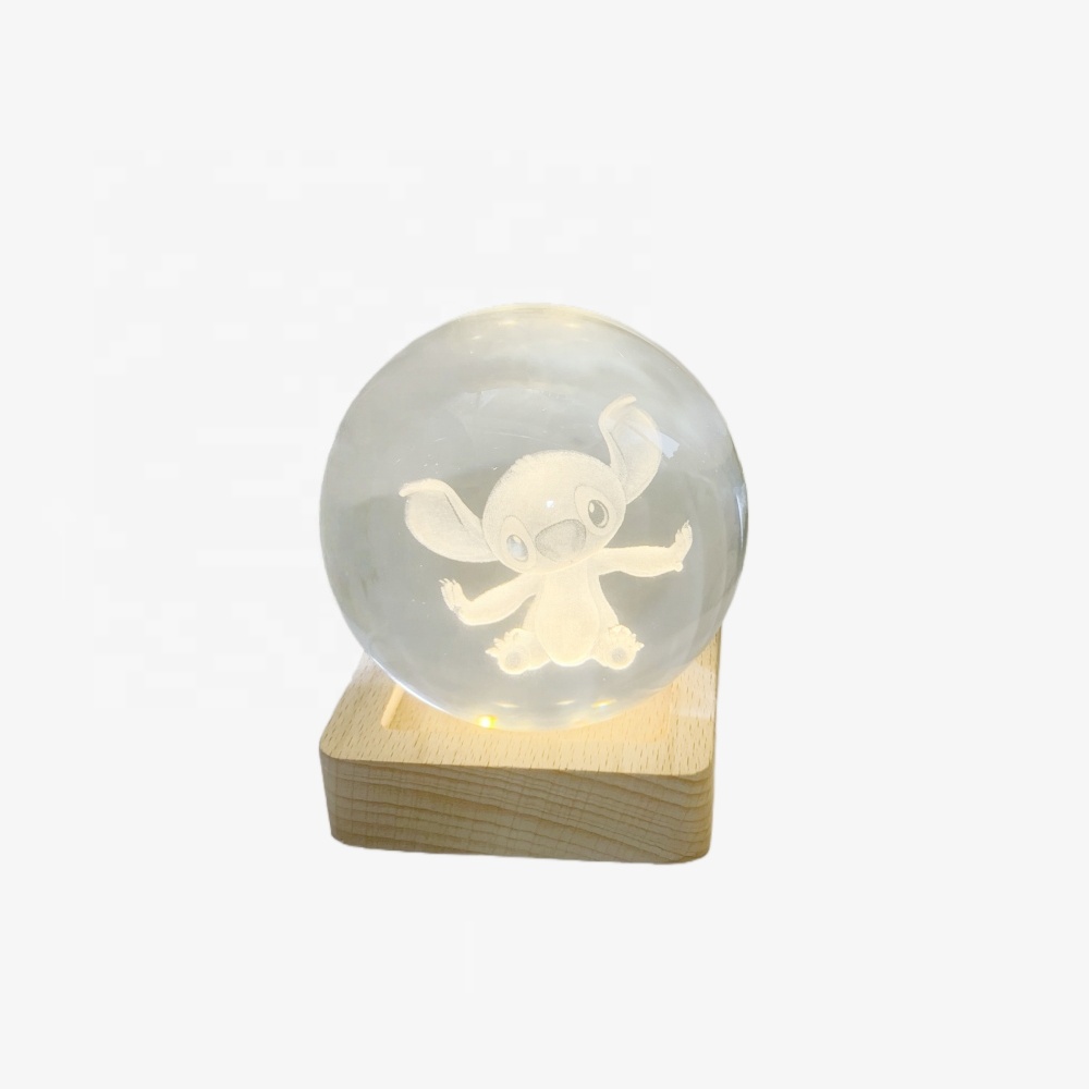 Crystal 3D Laser Luminous Night Light Decoration Crystal Ball Lamp with LED Base Desktop Home Christmas Decoration